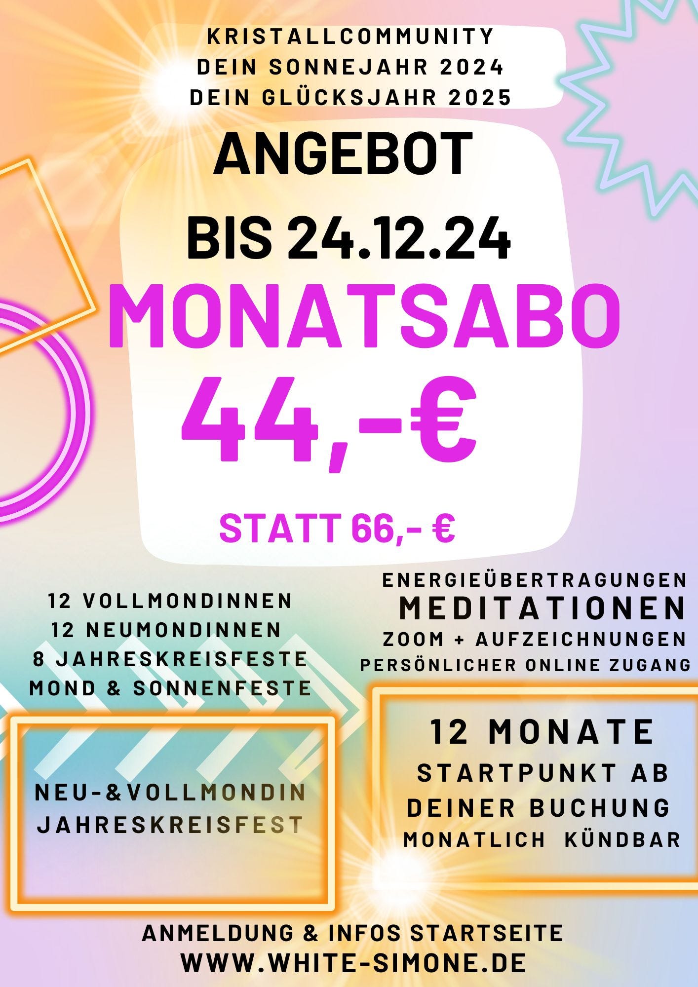 Magische hochschwingende Energieübertragungen für 13 Neumondinnen, 12 Vollmondinnen & 8 Jahreskeisfesten über Zoom, mit Aufzeichnung für dein persönliches immerwährendes Anwenden.