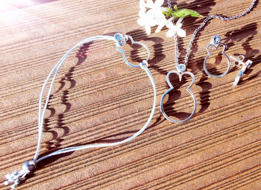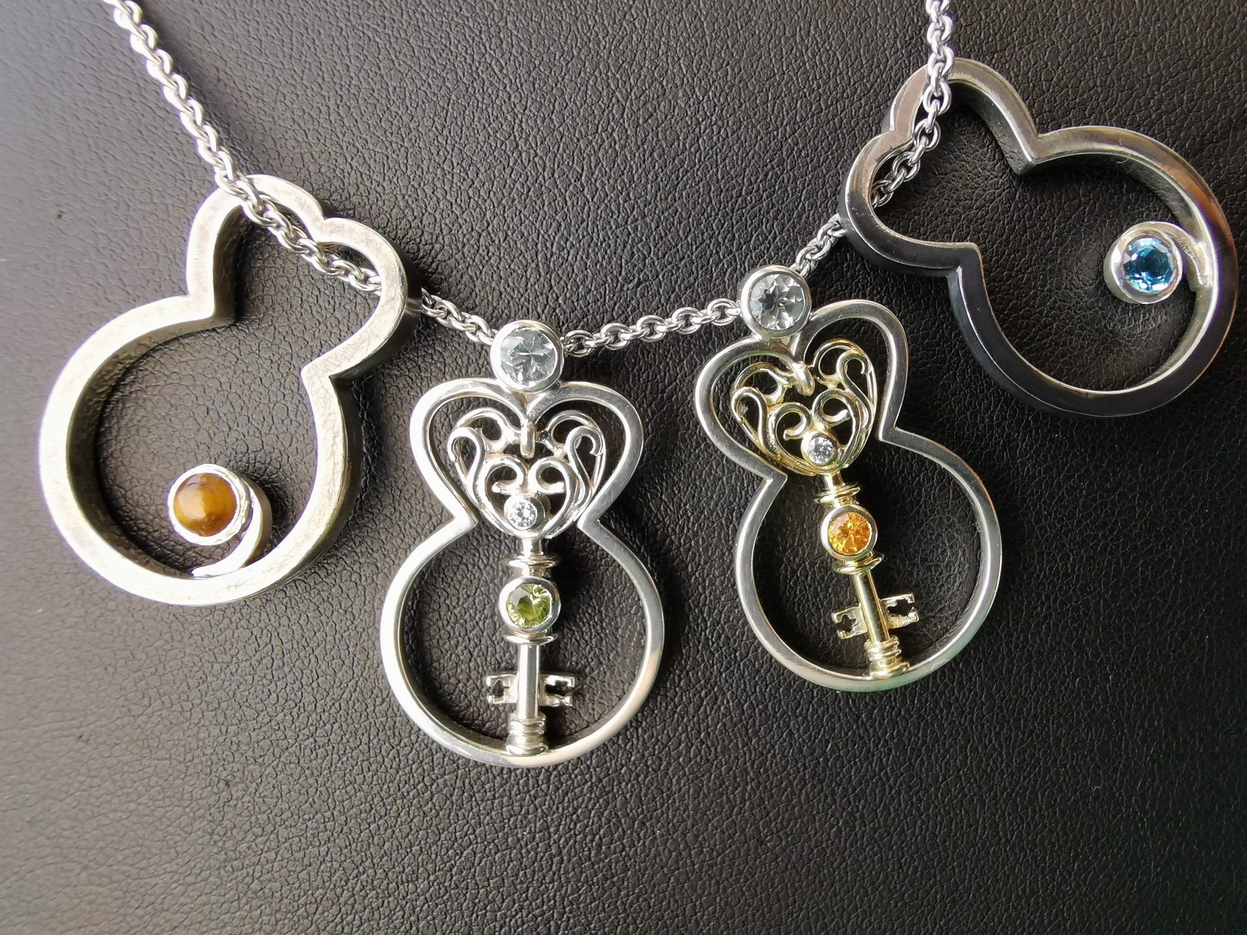 Die Schmuckstücke sind in 925/- Sterling Silber und in 585/- Gelb- oder Rotgold gefertigt.